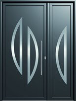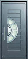 Aluminijasta vhodna vrata iz profilov ALUMIL M9650 s prekinjenim toplotnim mostom in enostavnejšim profilom ALUMIL M940.
